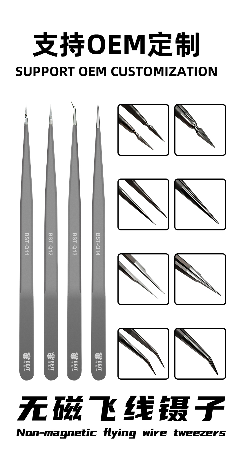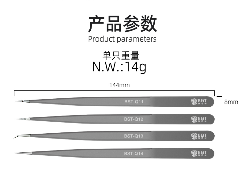 ▶ 产品名称: 无磁飞线镊子▶ 产品型号: BST-Q11/Q12/Q13/Q14▶ 产品类别: 镊子系列