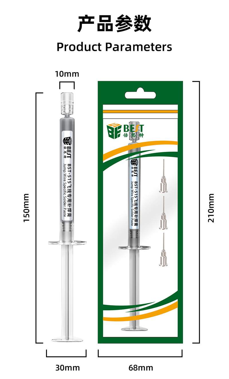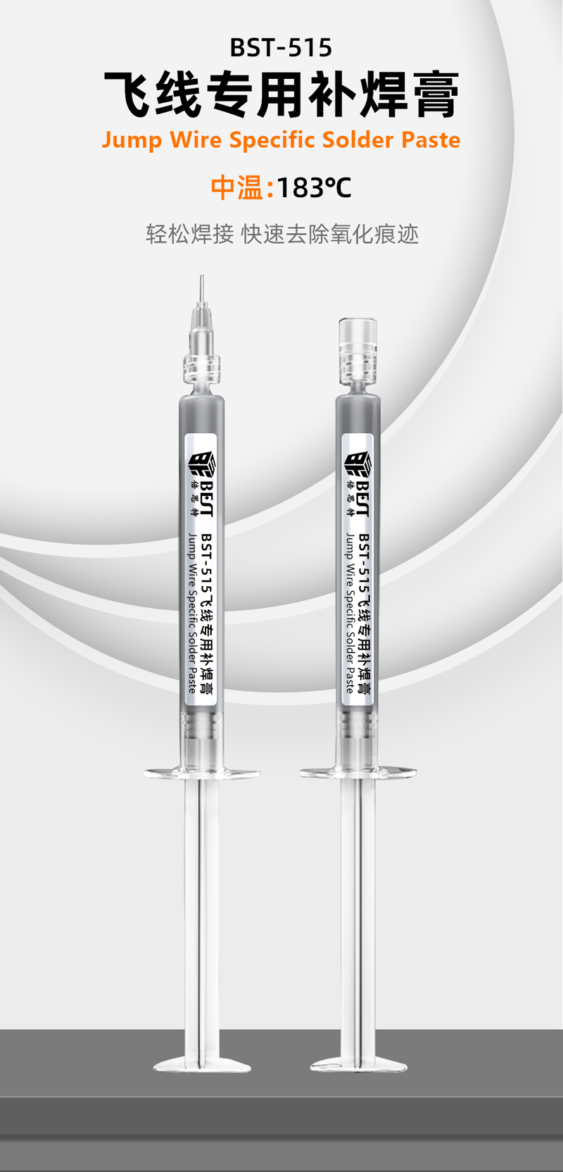 返回当前位置: 首页 / 产品中心 / BST-515 飞线专用补焊膏 手机维修指纹飞线补点专用中温焊锡膏 5毫升针筒式 内联座尾插专用纳米锡膏