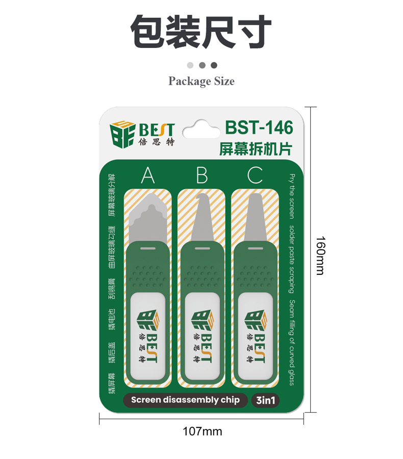 ▶ 产品名称: 屏幕拆机片套装▶ 产品型号: BST-146▶ 产品类别: 刀具系列