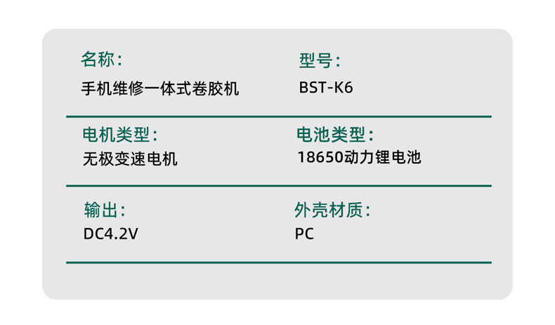 返回当前位置: 首页 / 产品中心 / BST-K6 一体式手机维修屏幕OCA除胶神器 电动卷胶机 18650可拆卸锂电池 电动拆胶捻枪