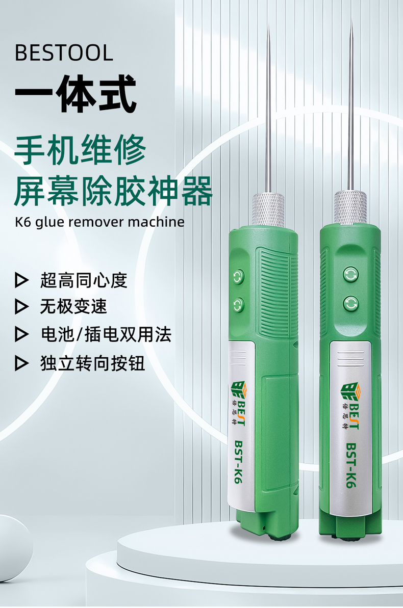 返回当前位置: 首页 / 产品中心 / BST-K6 一体式手机维修屏幕OCA除胶神器 电动卷胶机 18650可拆卸锂电池 电动拆胶捻枪