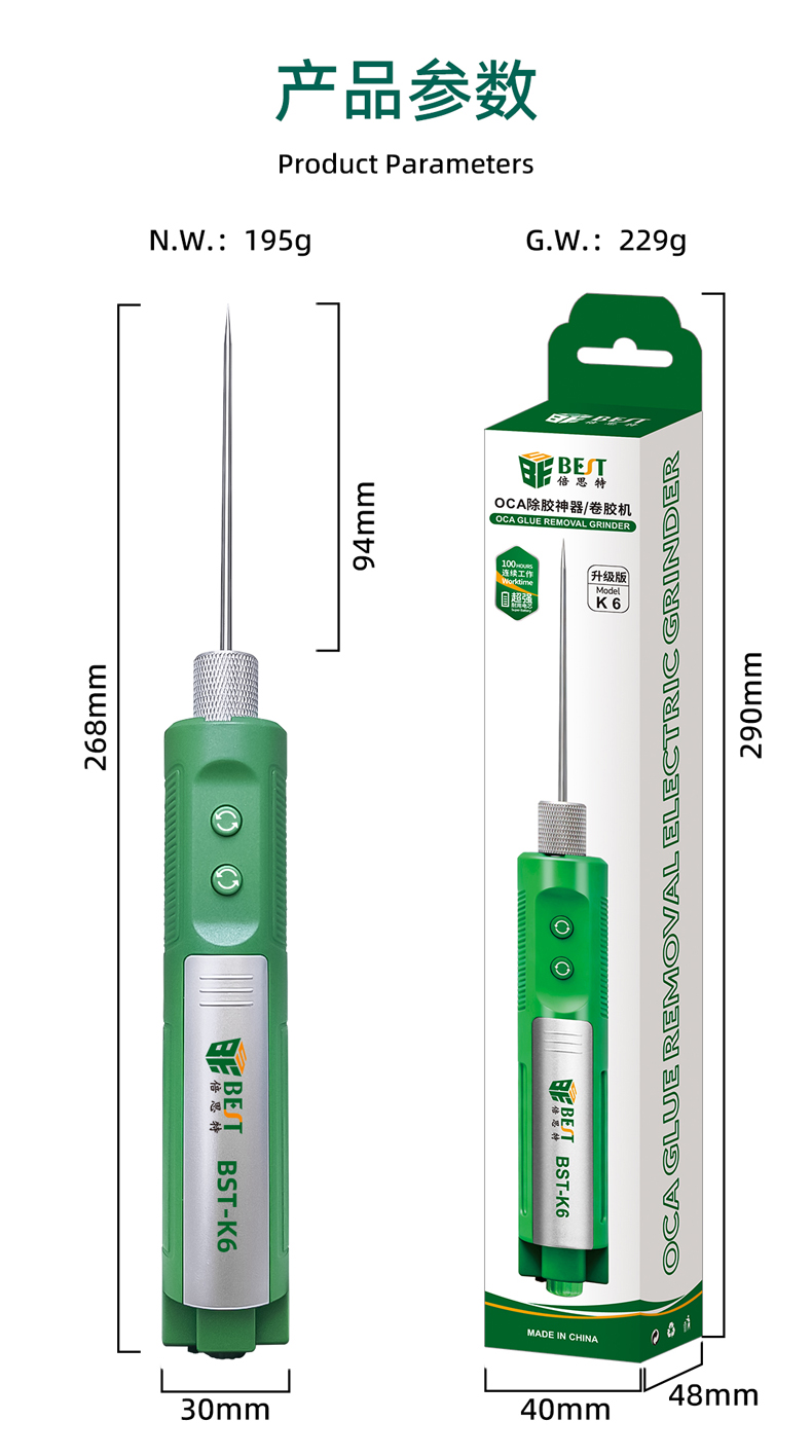 ▶ 产品名称: 一体式除胶机 电动拆胶捻枪▶ 产品型号: BST-K6▶ 产品类别: 电动工具系列