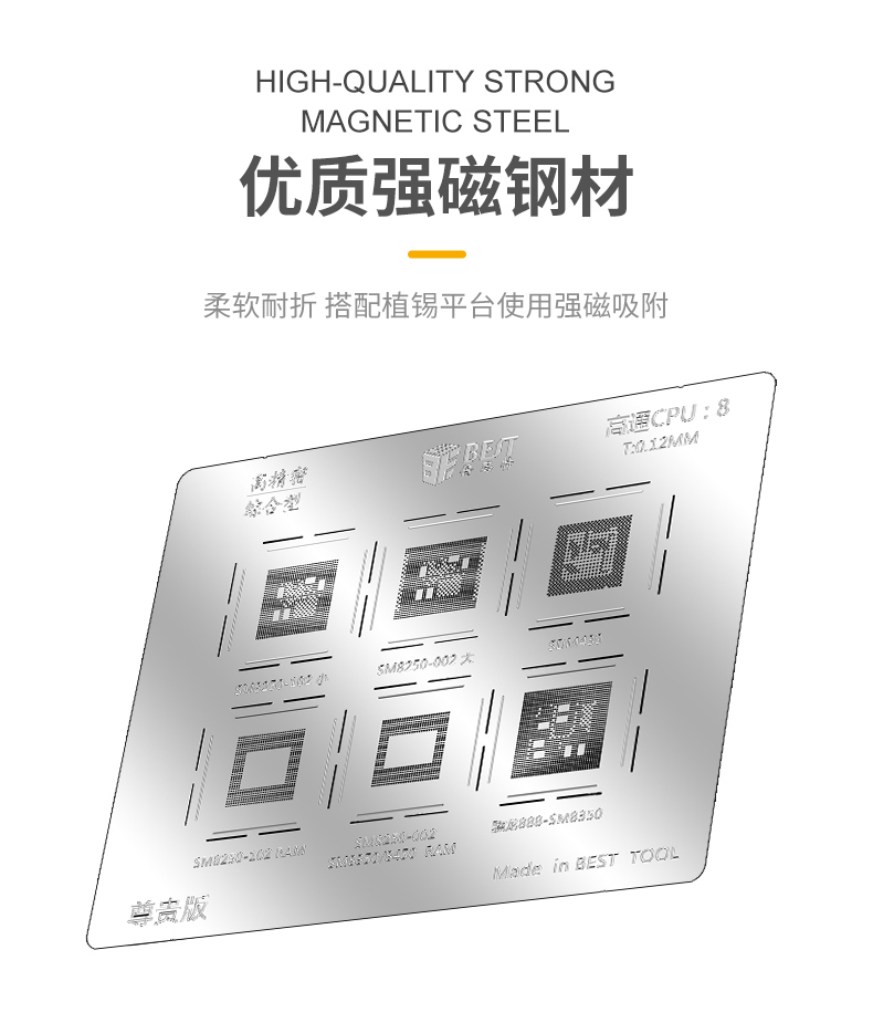 返回当前位置: 首页 / 产品中心 / BST-GT 高通CPU系列专用植锡网 多用植锡方孔定位钢网 植锡卡套装8pcs
